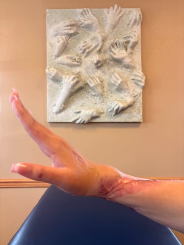 In May of 2023 I was in an accident where I almost lost my arm. My forearm was broken, my radial artery was severed and the median nerve was badly damaged. I had a skin graft a month after the accident. My hand was immobilized for 11 weeks. My surgeon Dr. Diamond, strongly recommended that I have therapy with Laura. I started seeing her 4 weeks after the accident and continued to see her for a year....3 times a week for 2 hours at a time. It was a long painful process leaving me in tears many times. But Laura never let up and kept pushing me. I am very grateful to her for being "mean" and not letting me slack off! I credit her with giving me mobility back to my hand. If ever I need therapy again, I hope she is still working! RoseMarie Levasseur